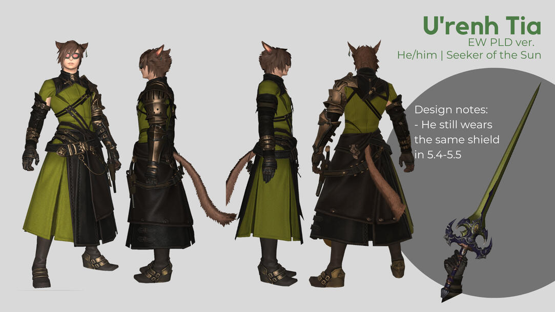 Alternatively, if you already drew up their character sheets, make sure to show turnarounds of their full body, close ups of important areas, any important props and provide some character information.Additionally, please provide me their colour palette and the names of the items they are wearing (can be looked up at FFXIV item database or TexTools), plus the in-game dye colour name.I can draw any weapons except for overly-detailed weapons/gear such as TEA (Alexander Ultimate), DSR (Dragonsong's Reprise) and Omega Ultimate (The Omega Protocol). No, you cannot bribe me, I'm sorry :')